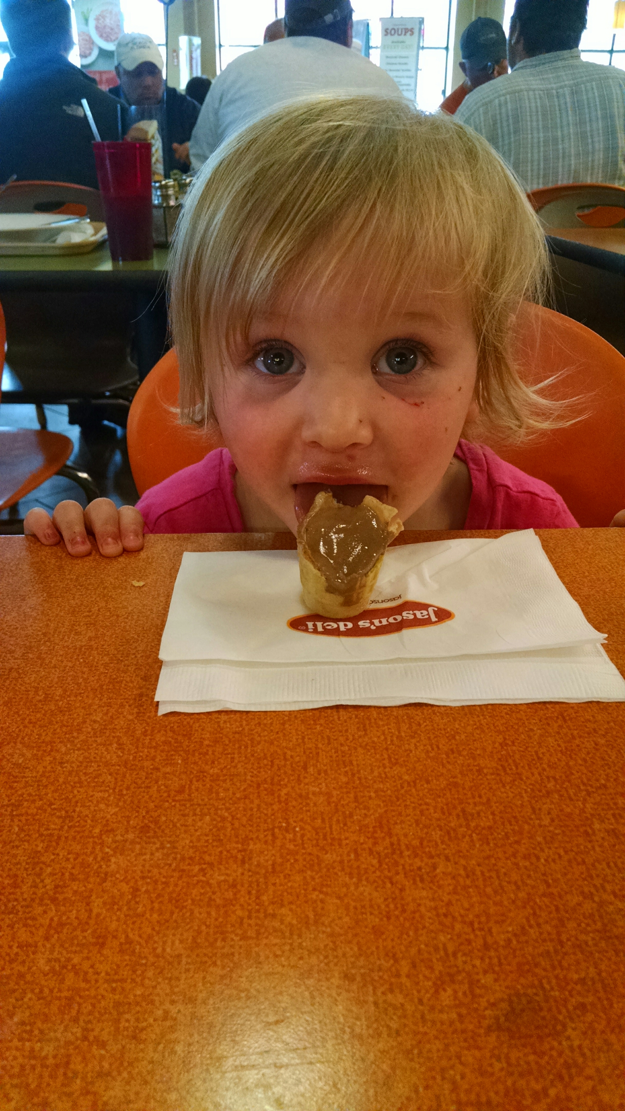 Claire took NO LESS than 30 minutes to eat hers. After each bite she rolled her eyes back and said “YUM!” It was a puddle by the time she was done so she resorted to licking it off the napkin.