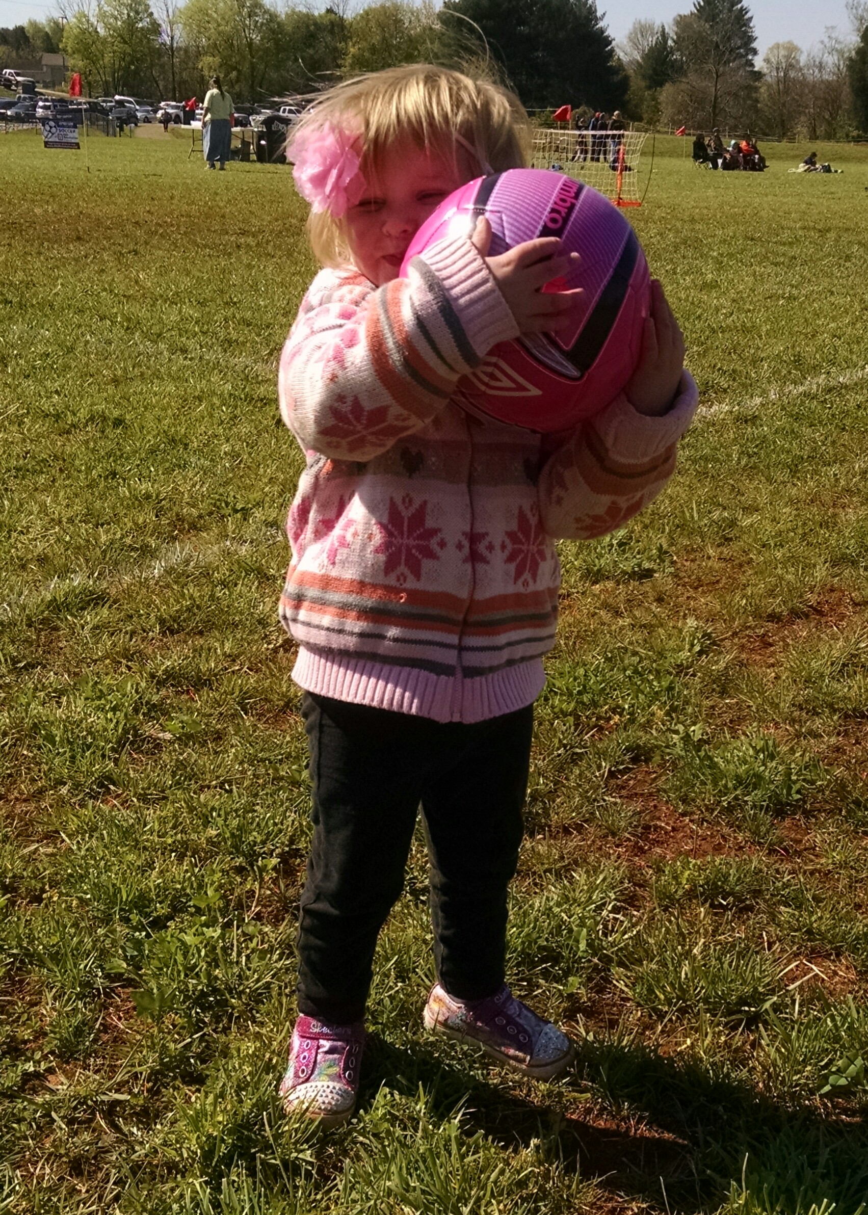 She says she loves it though. And really, who cares if she scores a goal or blocks the other team.