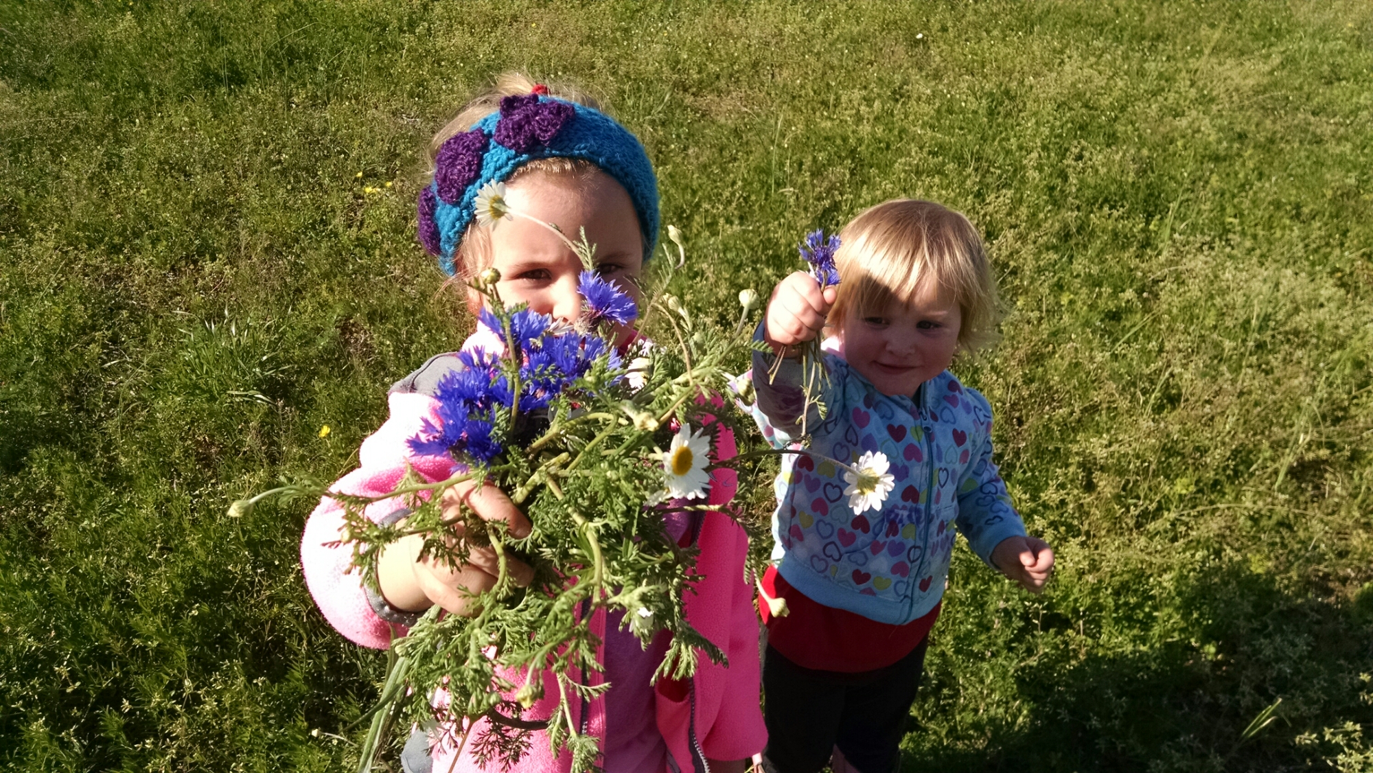 Picking wildflowers is a good way to pass time while waiting on our favorite farmer.