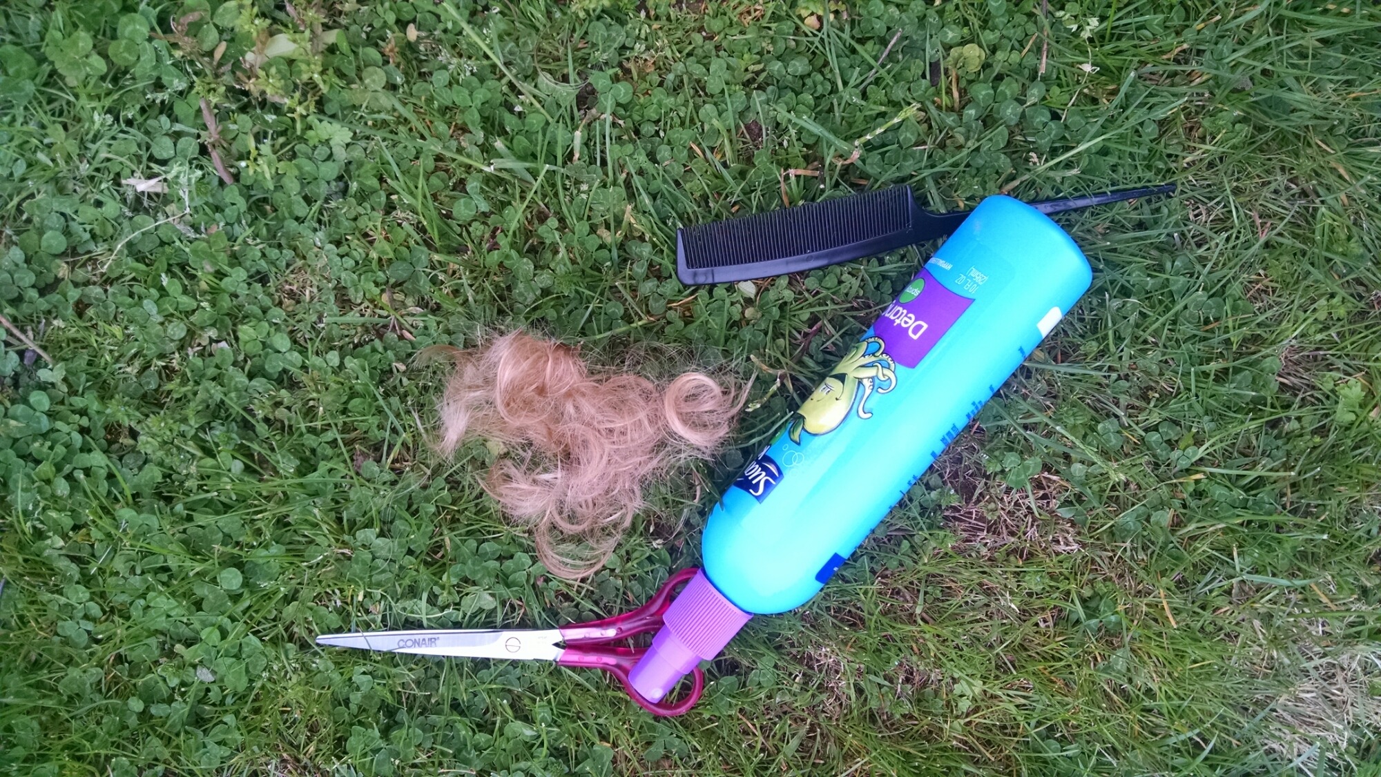The girls hair was wild… And lo and behold, I own scissors. I can fix this, right?
