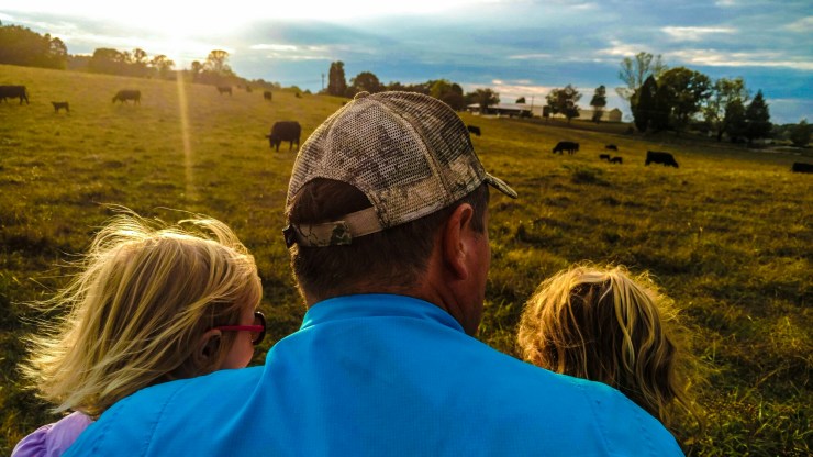Then the girls take a couple hours of a late nap, and we go back to the farm to feed the bottle calves, the horses and barn cats and follow Lynn around while he’s feeding cattle around the barn.