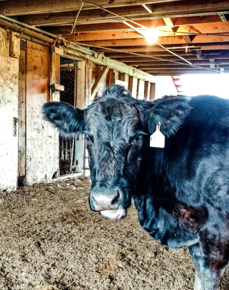 As they are now thriving, and yesterday it was time to move them back to where the other heifers and their calves are. Since this calf didn’t particularly want to get on the trailer, they had to help guide him.