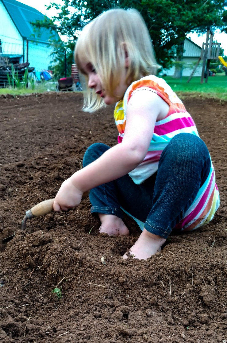 Lynn had tilled up the garden first, so we girls got started planting it while he worked up the sweet corn patch.