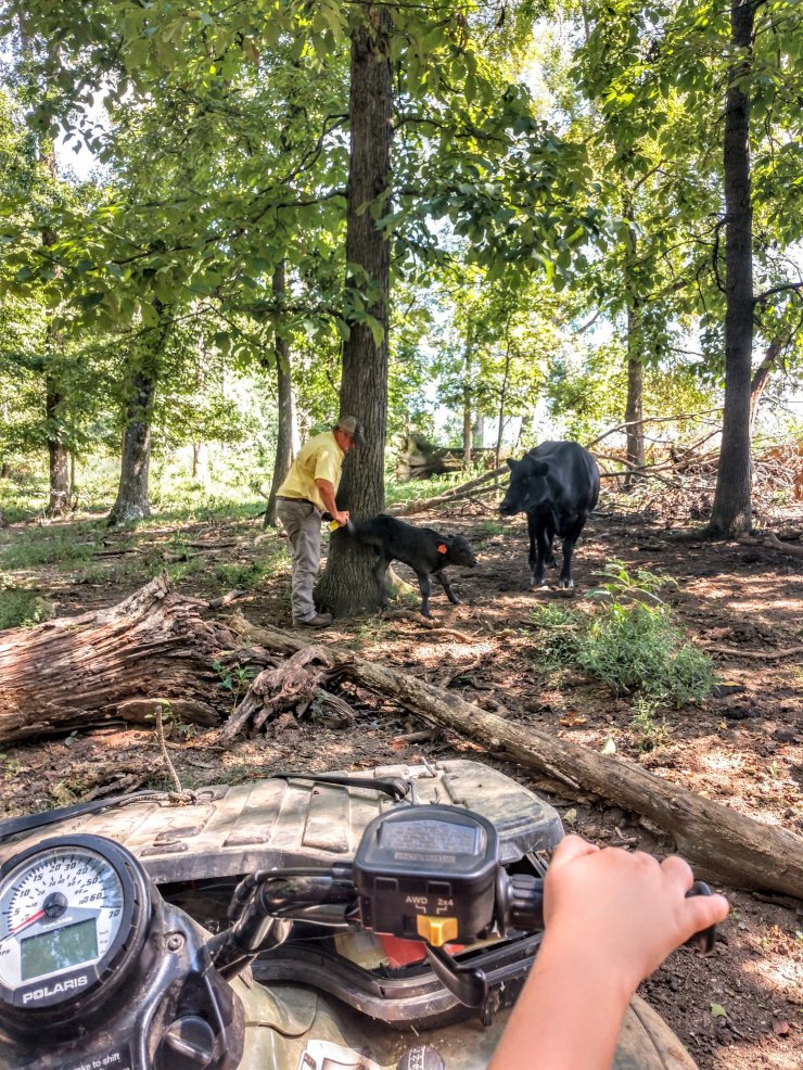 Sometimes they hide too well and Cows “lose” their babies. To make sure they are kept up with daily they are checked to make sure the cows have been nursed…but that is not always enough. Occasionally a calf will nurse a cow that is not it’s mother. So all the cows and calves must be found daily for a health check.