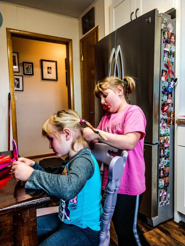 Cook, clean up, snuggle, and talk to each other. Spending time just being, not accomplishing as much which for us is an anomaly. In that space the girls giggle while they fix each other’s hair, coloring books are happily used, they rearrange their rooms and play with the toys that are neglected during better weather. They are learning to get along a little better. They argue like angry Italians with red faced shouting and wildly gesturing arms and are learning to apologize to make up. The apologies are coming easier and more often without my prompting. Self initiated apologies are very often sincere. They are learning relationships.