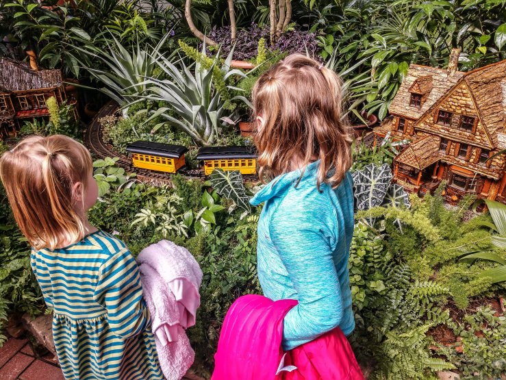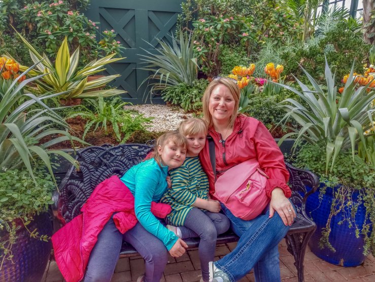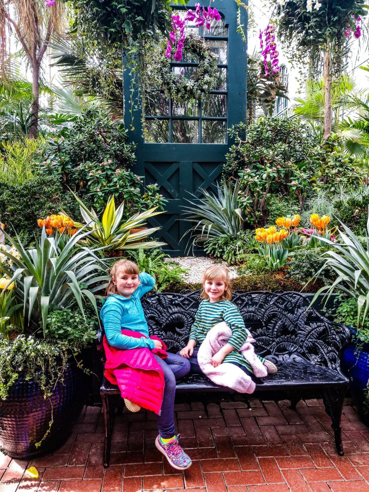 A dear friend of mine gave me tickets, and I’ve always wanted to go – I love green house flowers and landscaping. The girls are always up for an adventure with me. Lynn had to work so another friend went with me and drove. My car doesn’t have a DVD player in it, so the kids really enjoyed that her vehicle did.
