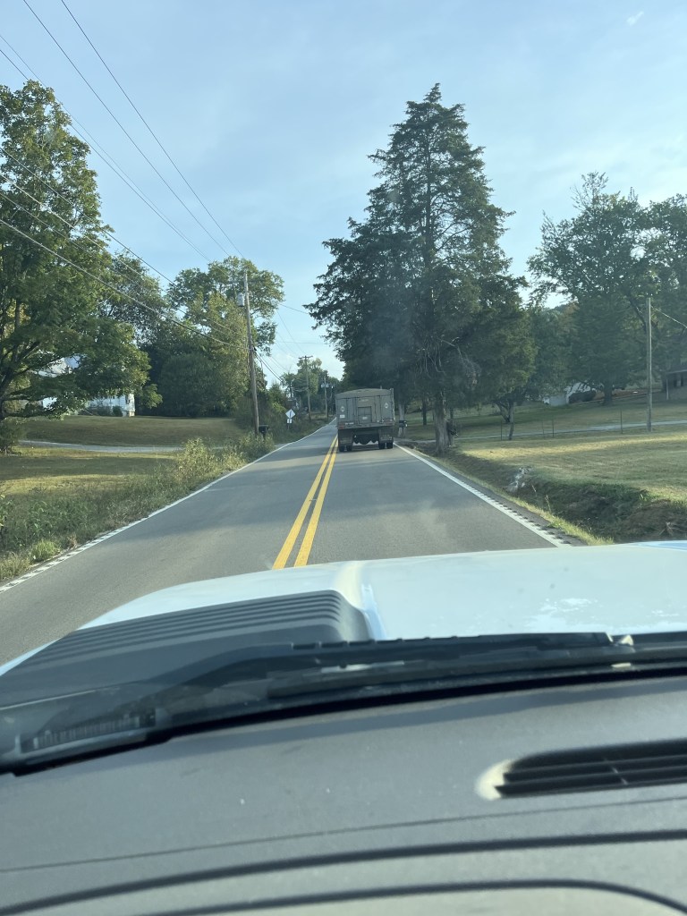 At any rate he had just left a field when a fellow started the tailgating/weaving deal. Then he added in the finger…..and hanging out the window and shouting. (I can only imagine what he was shouting wasn’t “Good job farmer buddy!”)